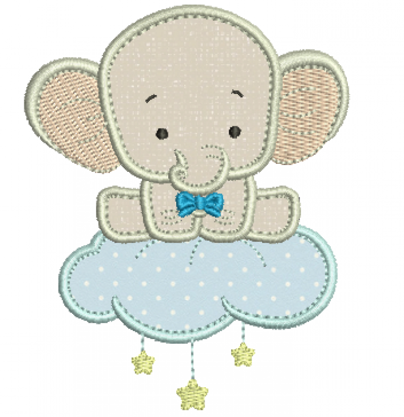Elefante Sentado na Nuvem- Aplique
